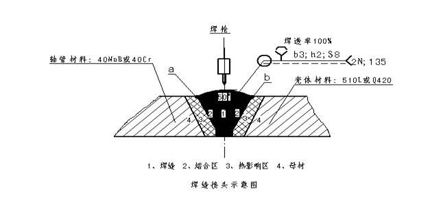 3.對(duì)軸管環(huán)焊縫需進(jìn)行超聲波100%全探傷。