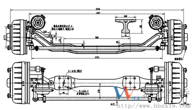 HT30F-033Z3 前橋總成由工字梁、轉向節總成、“S”凸輪、帶滾輪制動器總成、制動鼓及輪轂總成、轉向節臂、橫拉桿總成等組成。HT24B-128Z3-5.286后橋總成由后置式鑄造橋殼,主減速器總成、“S”凸輪、帶滾輪制動器總成、制動鼓及輪轂總成、全浮式半軸等件組成。它具有噪音低、運行平穩、安全系數高、制動性能好等優點。