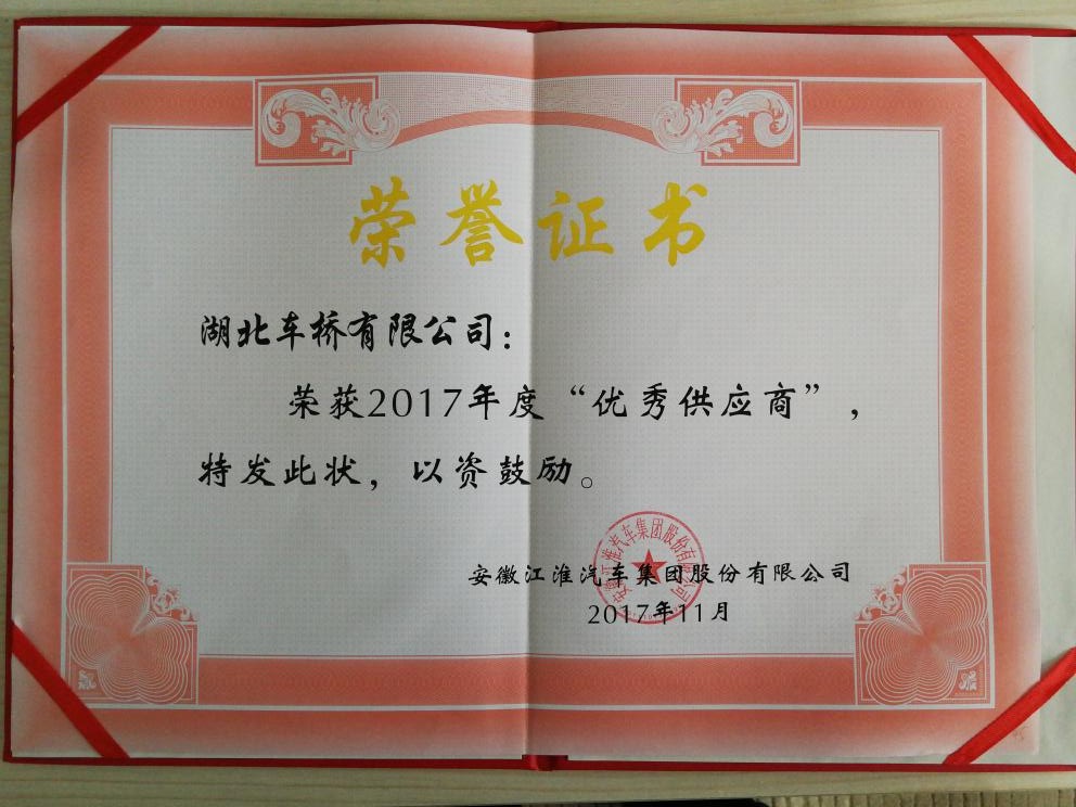 首頁 ? 新聞動態 ? 喜訊:熱烈慶祝湖北車橋有限公司榮獲安徽江淮汽車集團股份有限公司2017年年度優秀供應商發布時間:2017-11-18