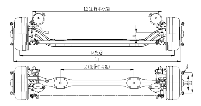 1.前軸為整體鍛造結構,采用加強設計,承載能力強; 2.輪距、板簧距可靈活調整