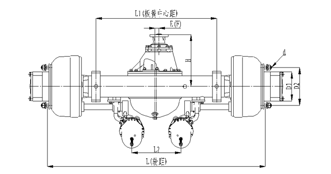 1.橋殼加強型設(shè)計,承載能力強;2.車輪輪輞定位方式可采用球面定位或止口定位;3.板簧距與輪距可以靈活調(diào)整